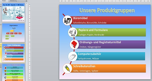 PowerPoint ist eine Software mit der sich interaktive Präsentationen unter Windows und Mac OS erstellen lassen. In vielen Betrieben und Schulen gehört PowerPoint heute zum Standard. Verwendet wird PowerPoint häufig bei Vorträgen, Pressekonferenzen, Meetings oder Mitarbeiterschulungen aber auch im Unterricht. Zudem sind immer häufiger PowerPoint-Präsentationen im Internet zu finden. Damit kann man Sachverhalte einfach und schnell erklären.